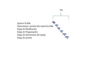 T.F.S significa Tiempo Fuera de Servicio. El símbolo (—) indica el lapso que se toma para atender cada uno de esos tiempos logísticos. Y estos pueden variar de acuerdo a “cuán bien” sean aprovechados, evitando así, que con el desperdicio de estas magnitudes o momentos cualquiera de esas etapas, “El Tiempo” no nos perdone y pase su factura, ocasionando por ejemplo: un aumento en la indisponibilidad del equipo y por consiguiente una baja disponibilidad.